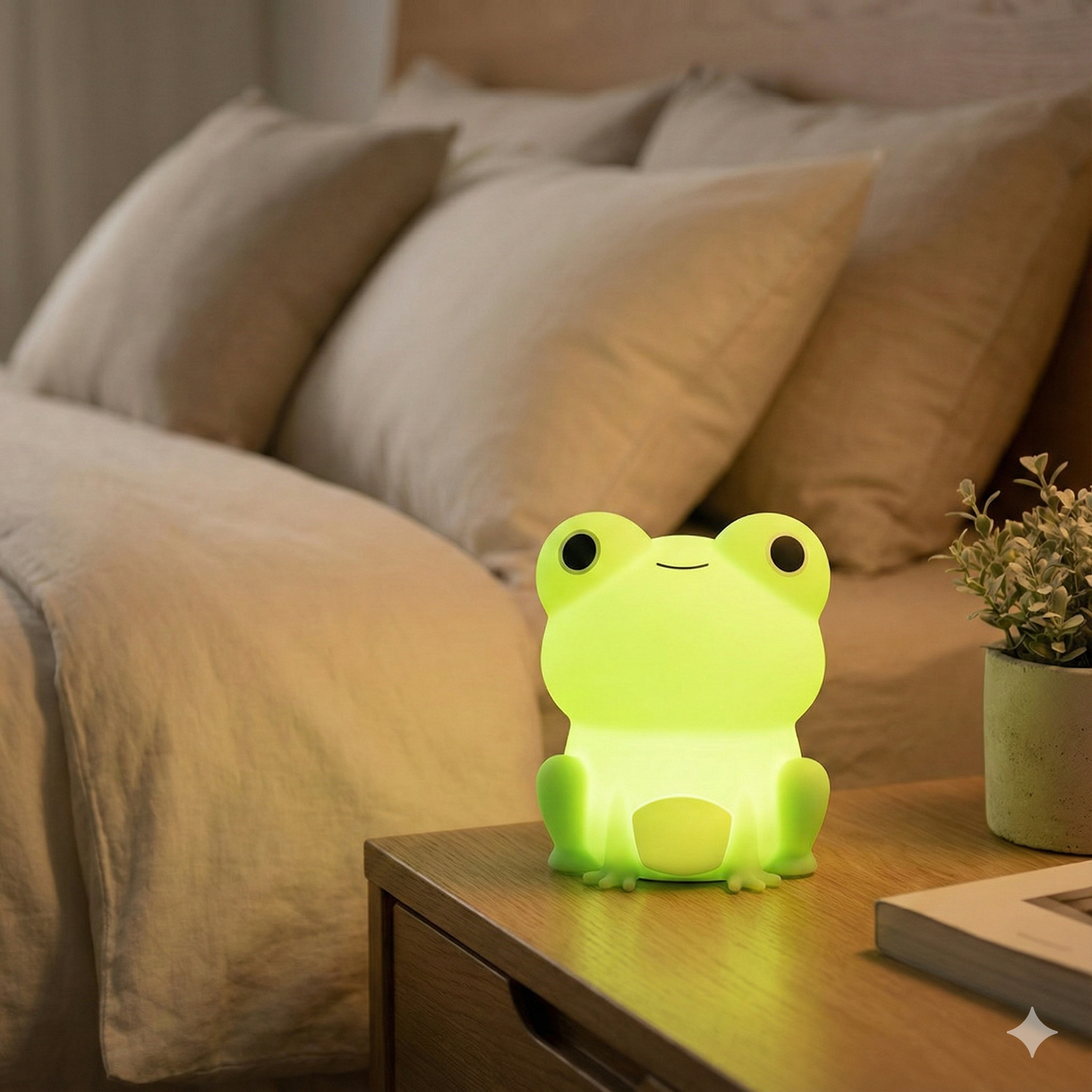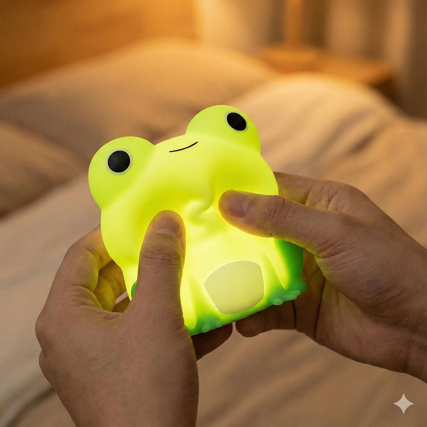 De FrogBuddy™ is ideaal voor zowel kinderen als volwassenen. Gebruik hem als nachtlamp op je nachtkastje, zacht sfeerlampje in de woonkamer, cosy licht op je bureau of als subtiele lamp in de baby- of kinderkamer. Overal waar je een warme, rustgevende gloed wilt, voelt FrogBuddy™ zich thuis.