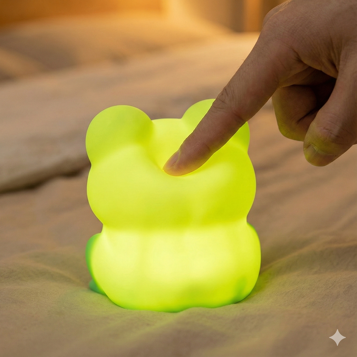Geen gedoe met kleine schakelaartjes in het donker. Je tikt simpelweg op de FrogBuddy™ om hem aan of uit te zetten en de lichtmodus te veranderen. In één seconde van volledige duisternis naar een zachte gloed – zelfs met slaperige ogen of volle handen.